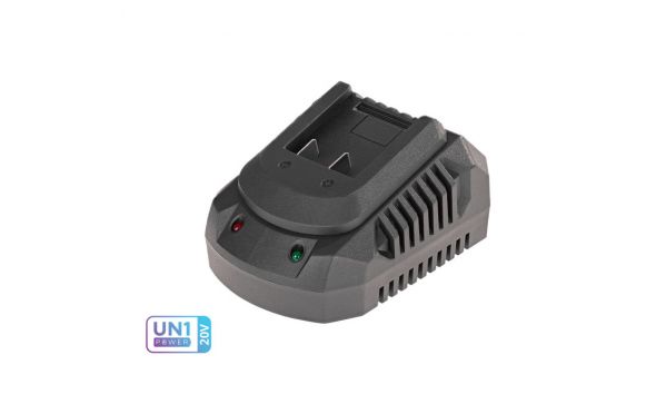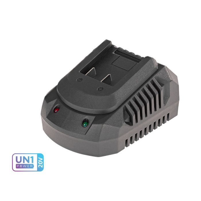 Φορτιστής KRAUSMANN® για μπαταρίες τύπου UN1 POWER Li-Ion 20V. Διαγνωστικό με ένδειξη λυχνίας LED που δείχνει την κατάσταση της μπαταρίας. Συμβατές μπαταρίες: Μπαταρία Επαναφορτιζόμενη Συρόμενη Li-Ion 2.0Ah 20V (B202), Μπαταρία Επαναφορτιζόμενη Συρόμενη Li-Ion 4.0Ah 20V (B204), Μπαταρία Επαναφορτιζόμενη Συρόμενη Li-Ion 5.0Ah 20V (B205)