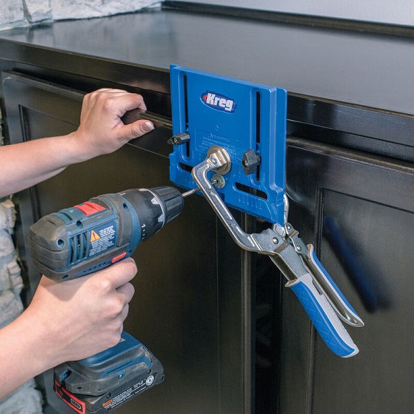 - Ρυθμιζόμενοι οδηγοί για ακριβή τοποθέτηση πόμολων σε ντουλάπια.