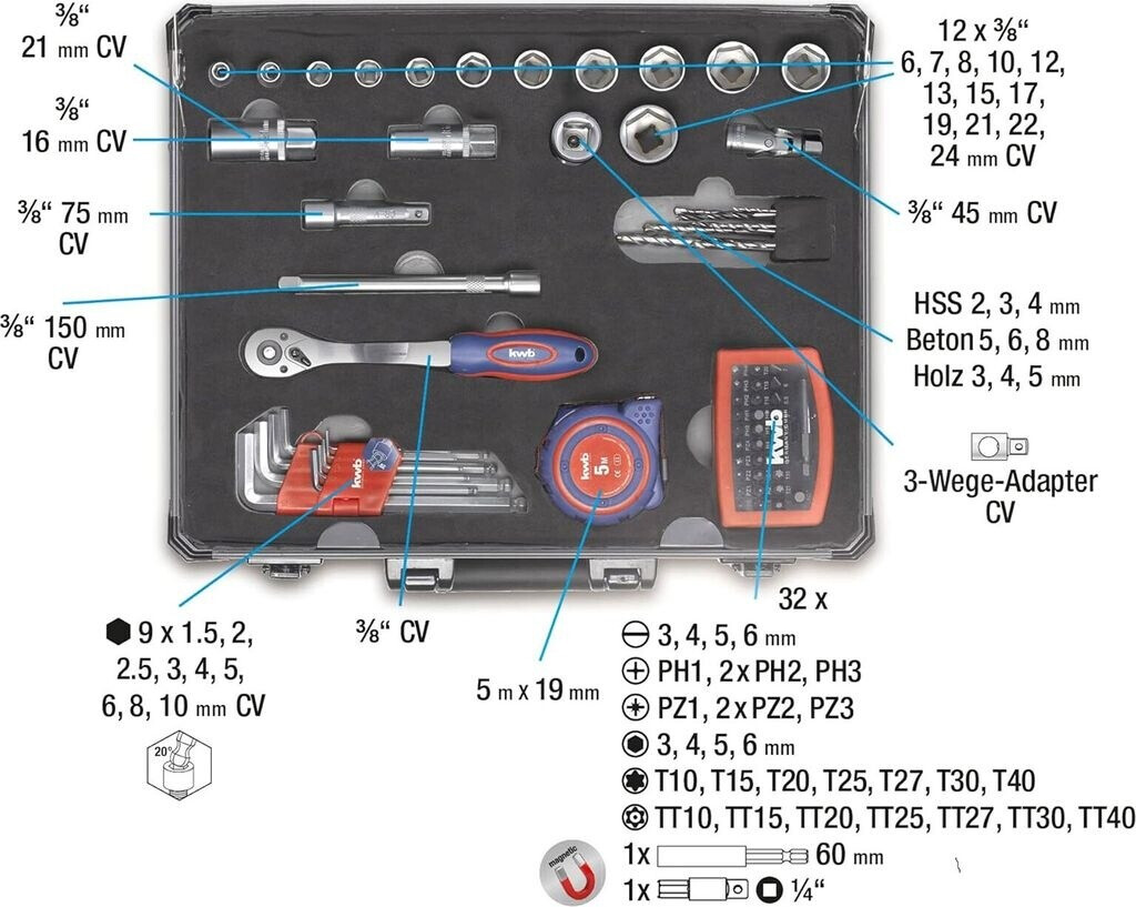 - KWB - Σετ Κασετίνα Εργαλείων 99 Τεμαχίων.