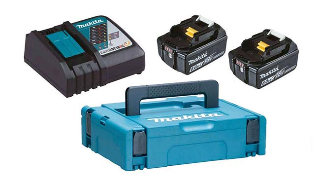 • Σετ δυο μπαταριών 18V / 6.0Ah με φορτιστή και βαλιτσάκι MakPac.