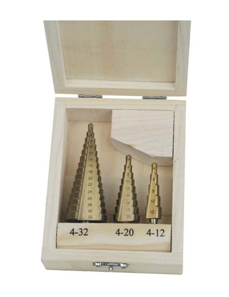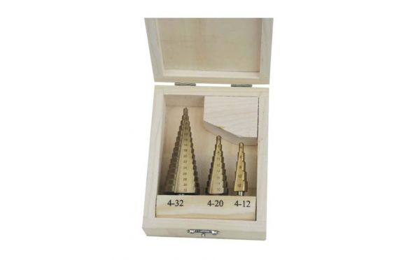 - MANNESMANN - 54603 Σετ Τρυπάνια Κωνικά Τιτανίου 3 Τεμ σε Ξύλινη κασετίνα