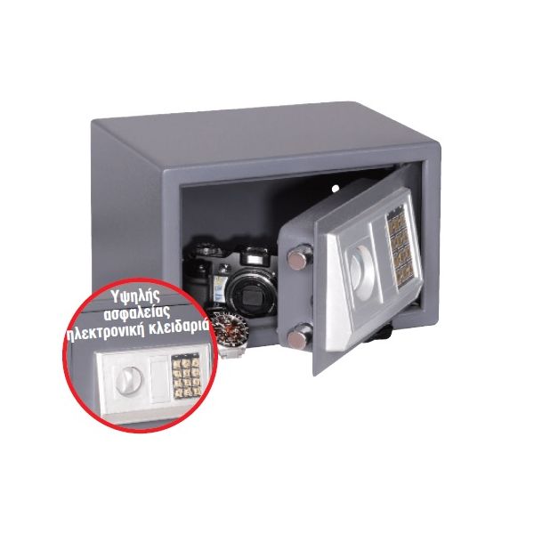 - Η προγραμματιζόμενη ηλεκτρονική κλειδαριά ασφαλείας σάς επιτρέπει να επιλέξετε τον συνδυασμό σας, ενώ το έξτρα κλειδί διασφαλίζει ότι θα έχετε πάντα πρόσβαση στο χρηματοκιβώτιο σας, ακόμα και στην περίπτωση που ξεχάσετε τον συνδυασμό.