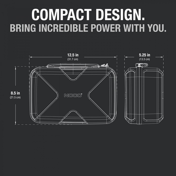 - Προστατέψτε τον εκκινητή μπαταρίας GBX75 με μια ελαφριά, ανθεκτική στις κρούσεις, αντικραδασμική και ανθεκτική στις καιρικές συνθήκες θήκη.