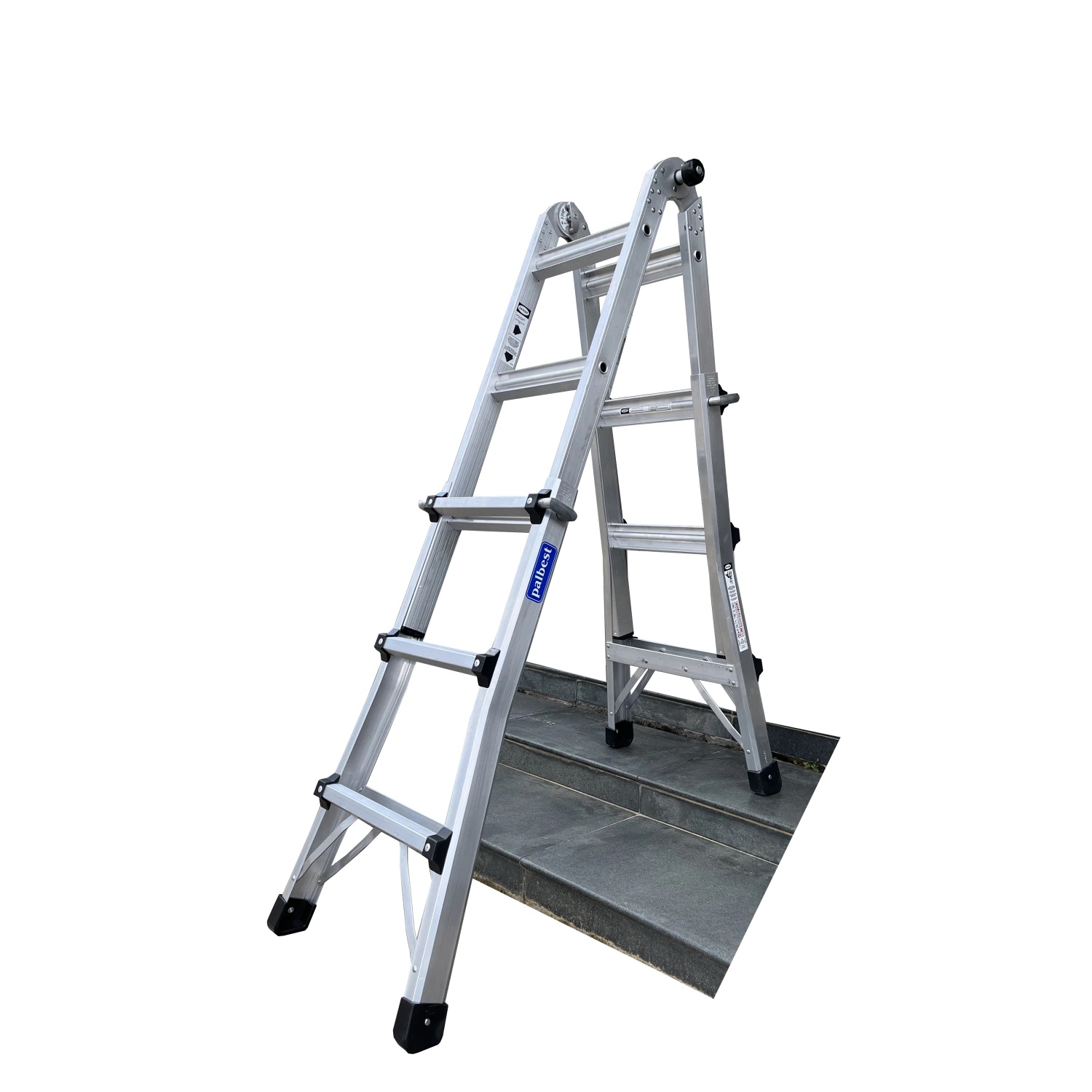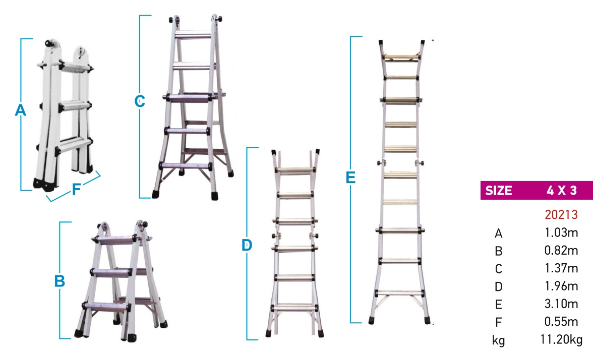 Σκάλα αλουμινίου με 2 αυτόματες ασφάλειες.Δυνατότητα σκάλας να διαμορφώνεται σε 5 διαφορετικές θέσεις κλειδώματος.Χρήση σε ανισόπεδο.Εύκολη στην μεταφορά και αποθήκευση λόγο μεγέθους.Η σκάλα παρέχει όλες τις ευρωπαϊκές προδιάγραφες ΕΝ131 Μέγιστη αντοχή 150kg.