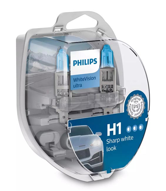 To σέτ περιέχει 2 λαμπτήρες White Vision ultra H1 και 2 λαμπτήρες W5W έτσι ώστε να αποχτήσει άσπρο χρώμα και η μικρή σας σκάλα φώτων