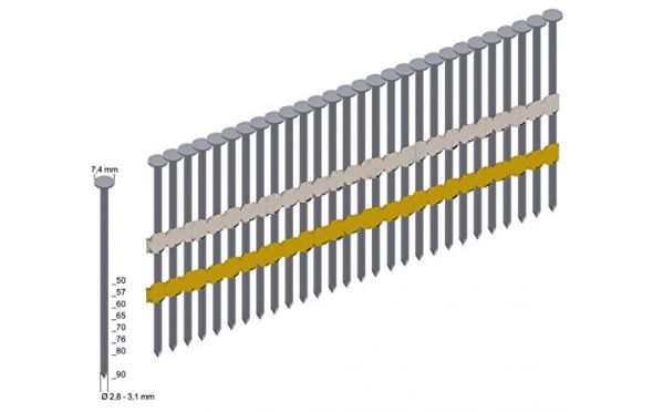 Πρόκα με στρογγυλό κεφάλι σε δεσμίδα με πλαστική σύνδεση