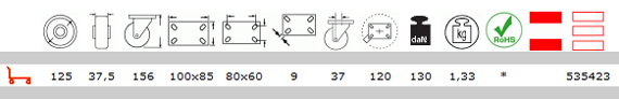 Κατάλληλο για καρότσια με ελαφρα φορτια, επίσης σε δαπεδα με ανωμαλω εδαφος. εσωτερική και εξωτερική χρηση.Συνιστατε σε εφαρμογές: καροτσάκια εργαλείων, καροτσάκια για βιομηχανική χρηση, μικρές κινητές σκαλωσιές, καδους κτλ.Ρόδα:ελαστικό πέλμα.Βάση:γαλβανιζε.