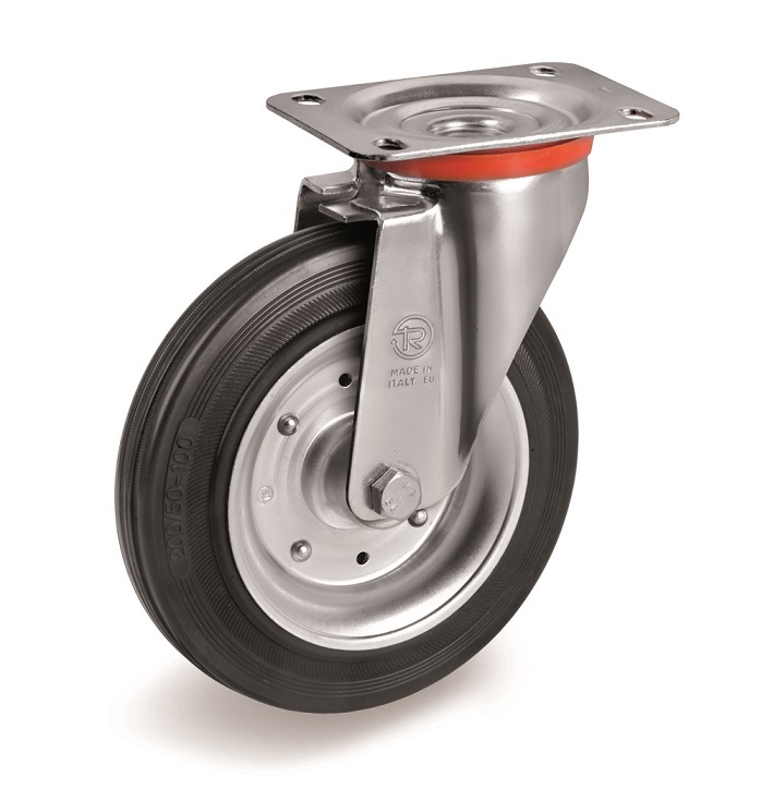 Κατάλληλο για καρότσια με ελαφρα φορτια, επίσης σε δαπεδα με ανωμαλω εδαφος. εσωτερική και εξωτερική χρηση.Συνιστατε σε εφαρμογές: καροτσάκια εργαλείων, καροτσάκια για βιομηχανική χρηση, μικρές κινητές σκαλωσιές, καδους κτλ.Ρόδα:ελαστικό πέλμα.Βάση:γαλβανιζε.