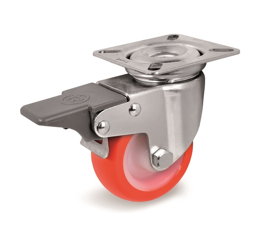 Κατάλληλο για χρήση σε διαφορετικούς τύπους καροτσιών, ιδίως στο χώρο της εστίασης.Καλή ικανότητα μεταφοράς φορτίου σε σχέση με τροχούς μικρής διαμέτρου.Πέλμα:θερμοπλαστική πολυουρεθάνη.Κέντρο: πολυαμίδιο.Βάση: γαλβανιζέ.