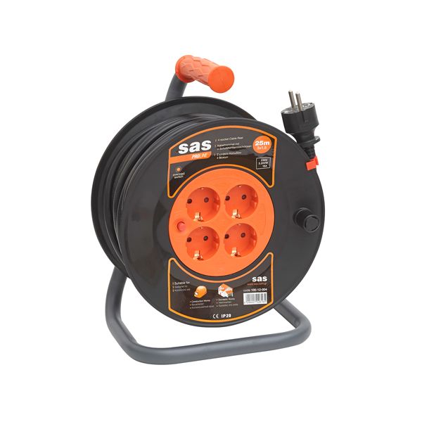 Μπαλαντέζα της SAS 10 μέτρων με 4 πρίζες σούκο Ασφάλεια υπέρτασης Μέχρι 250V και κάθε πρίζα της έχει την δυνατότητα να σηκώσει μέχρι 16Amp Τροφοδοτεί μέχρι 3200Watt. Μόνο για εσωτερικούς χώρους