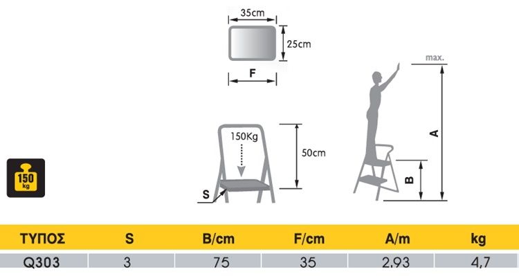• Η σκάλα κατασκευάζεται σύμφωνα με τα ευρωπαϊκά πρότυπα EN131