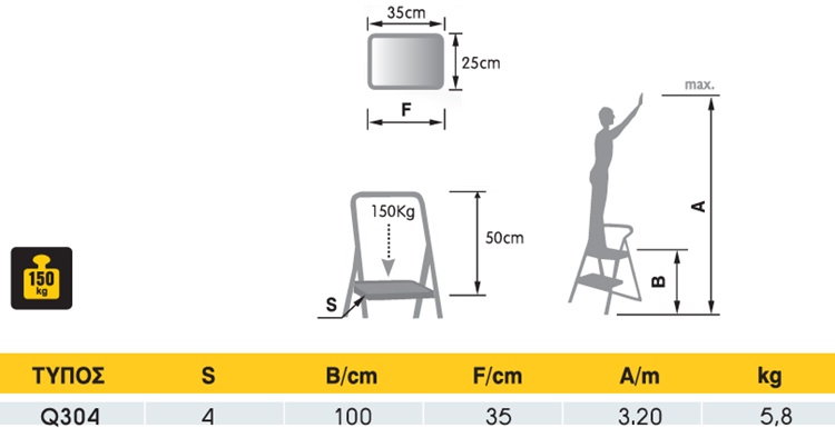 • Η σκάλα κατασκευάζεται σύμφωνα με τα ευρωπαϊκά πρότυπα EN131