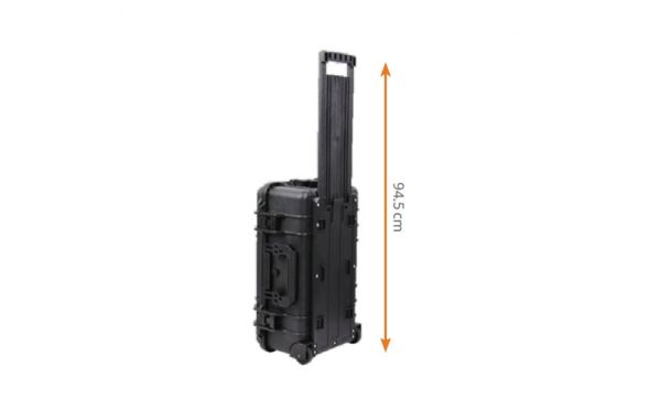 IP65: Αδιαπέραστo από νερό και σκόνη. Αφρώδες υλικό κομμένο σε αποσπώμενα μικρά κομμάτια (pick & pull). Κλιπς που ασφαλίζουν. Βαλβίδα εξισορρόπησης εσωτερικής πίεσης. Υποδοχές για λουκέτο. Χερουλι βαρέος τύπου. Με ρόδες & τηλεσκοπική λαβή.