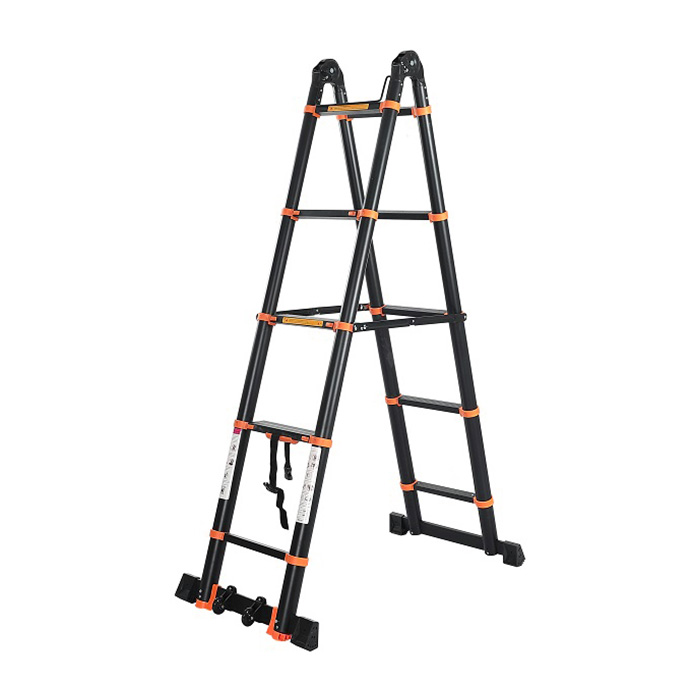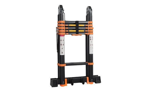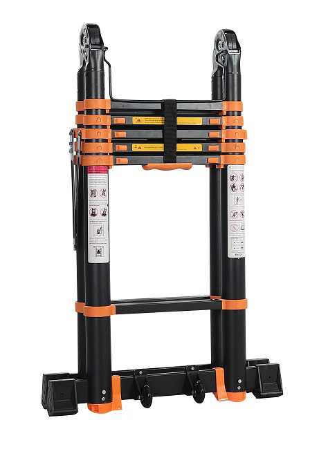 Τηλεσκοπική σκάλα αλουμινίου ηλεκτροστατικής βαφής χρώματος μαύρου.