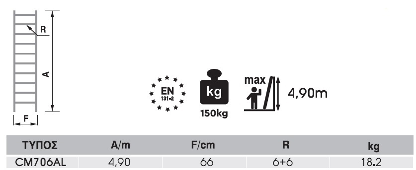 - Η σκάλα κατασκευάζεται σύμφωνα με τα ευρωπαικά πρότυπα EN131.