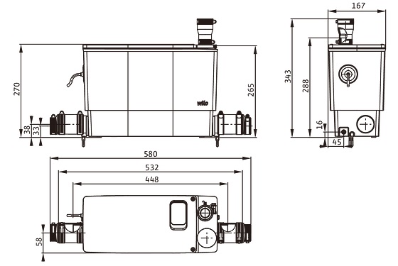 Συμπαγής και έτοιμη για σύνδεση ‌μονάδα άντλησης λυμάτων για την αποστράγγιση νιπτήρων, ντουζιέρας και μπανιέρας.Για την συλλογή και την άντληση σε οικιακές περιοχές: Λυμάτων χωρίς αποχωρήματα.Η μονάδα άντλησης λυμάτων ικανοποιεί τις απαιτήσεις κατά EN 12050-2.Συμπαγής, έτοιμη για σύνδεση και πλήρως εμβαπτιζόμενη μονάδα άντλησης λυμάτων με υποβρύχια αντλία. Η καταγραφή στάθμης εξασφαλίζεται με έναν κατακόρυφο πλωτηροδιακόπτη. Η εξαέρωση είναι ενσωματωμένη στο καπάκι και διαθέτει φίλτρο ενεργού άνθρακα.