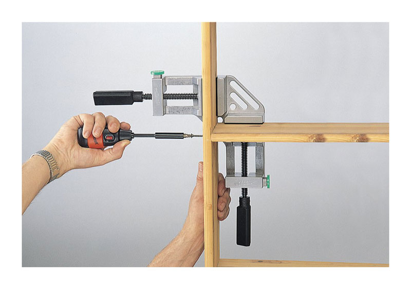 - Μέγγενη Γωνιών με μηχανισμό για γωνιακές συνδέσεις 90° και οδηγό κοπής για κοπές 45°.