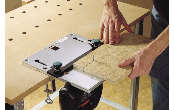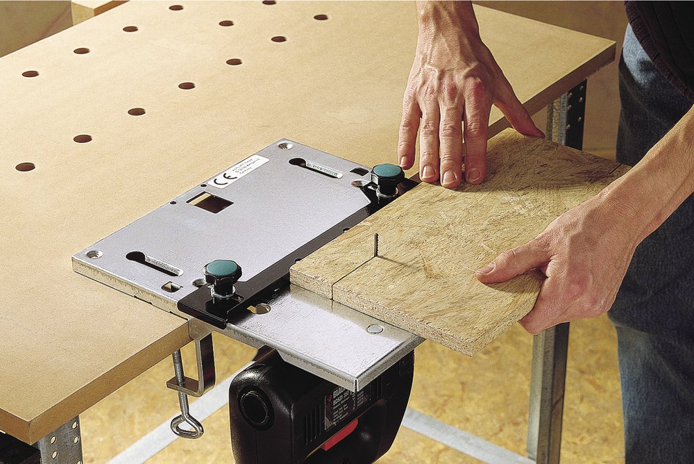 Τραπέζι σέγας - Το κατάλληλο ανταλλακτικό για ιδανικές εργασίες κοπής. Ακριβής κοπή λόγω σημειωμένων γραμμών στην επιφάνεια του πάγκου και την παράλληλο του. Η ειδική κατασκευή επιτρέπει την φινιρισμένη επεξεργασία κομματιών με ανωμαλίες στην επιφάνεια τους προερχόμενες απο την εργασία κοπής. 2 μεταλλικούς σφιγκτήρες για τοποθέτηση σε πάγκους εργασίας πάχους μεχρι 60mm Πάνω τμήμα πάγκου 320 x 300 mm Επιφάνεια εργασίας γαλβανιζέ Για σέγες με μέγιστο μήκος λεπίδας 100 mm 1 Παράλληλος στοπ Βάρος: 2,25 Kg